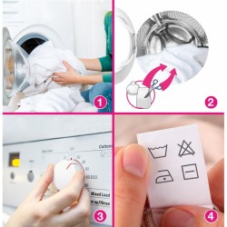 Otworzyć butelkę i woreczek, a następnie włożyć do bębna pralki razem z tkaninami. Włączyć program Syntetyki 40° bez prania wstępnego. Następnie od razu wyprać z proszkiem do prania. Przed użyciem zapoznaj się z instrukcją znajdującą się wewnątrz opakowania.